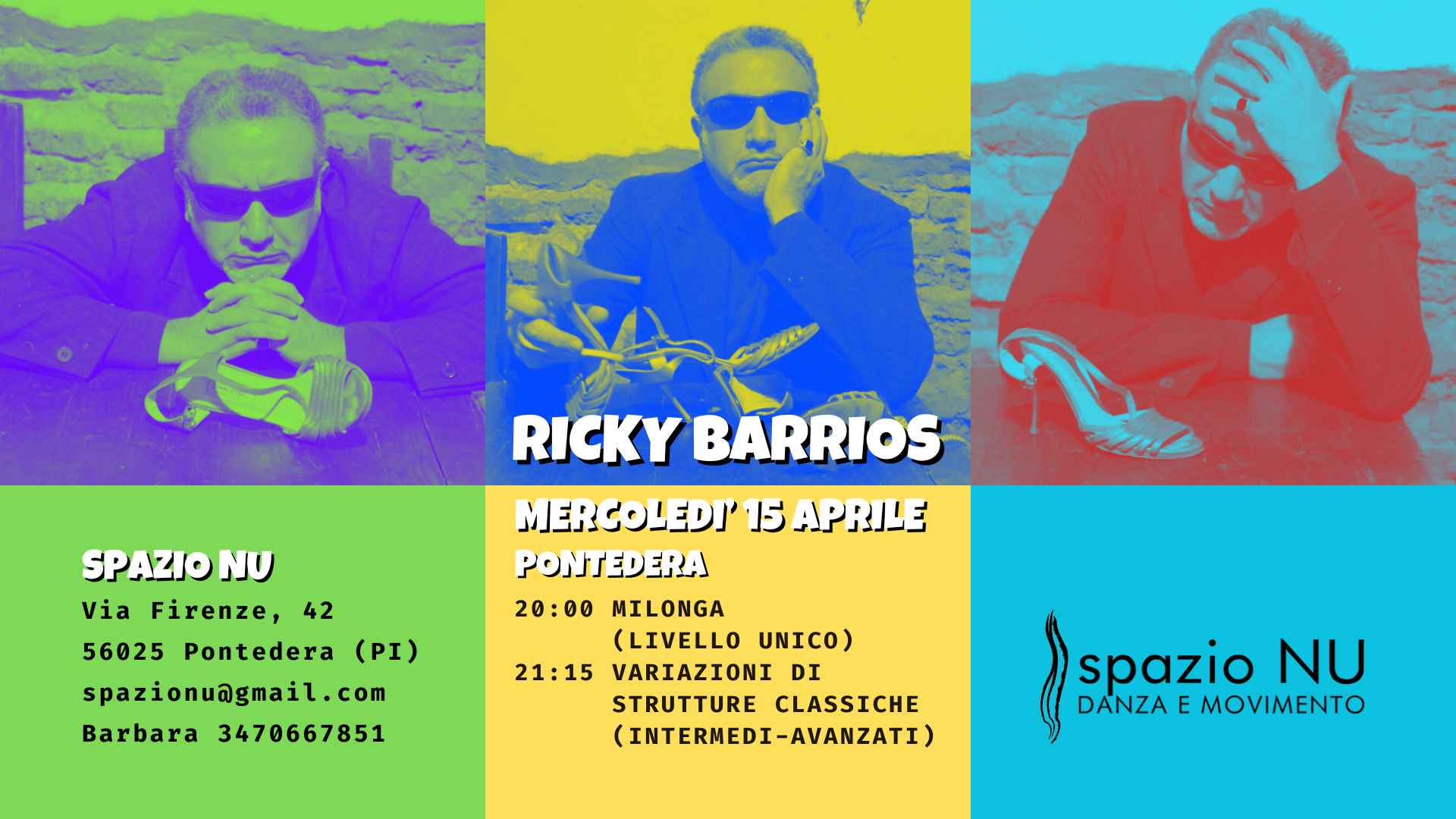 Mercoledì 15 aprile sarà con noi Ricky Barrios, per la prima volta a Pontedera, con due lezioni: