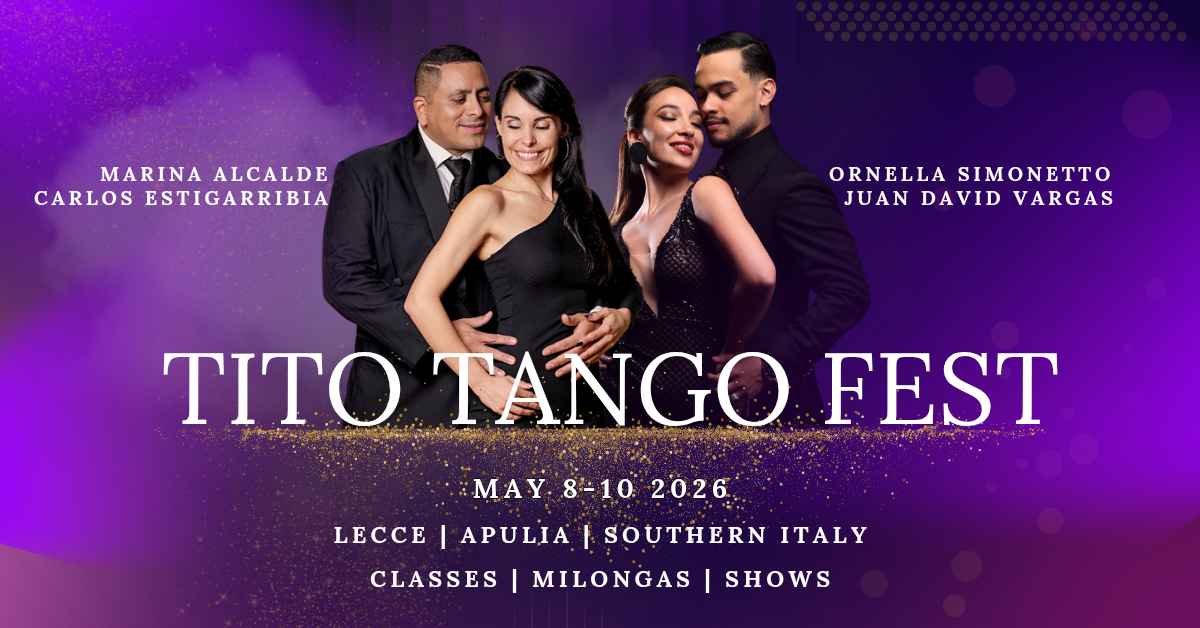 Tito Tango Fest, tre giorni dedicati al tango argentino in tutte le sue forme: milongas con Dj internazionali, workshops e super show dei maestri carlos Estigarribia & Marina Alcalde, Ornella Simonetto & Juan David vargas.  DJ