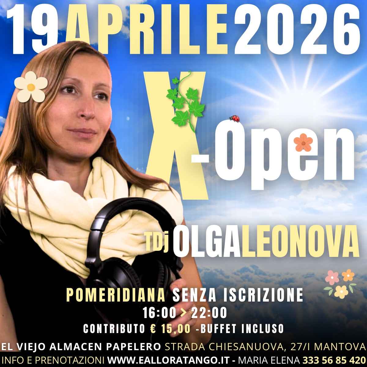 X-open 😊 Senza Iscrizione)19 Aprile 2026 – Pomeriggio Con Olga! ✨a Mantova si balla con Ealloratango Pomeridiana X-open 💃🕺con la musica di Olga Leonova Tdj 🎶🕒 Dalle 16:00 alle 22:00🥂 Buffet e acqua sempre a disposizione – perché anche il piacere della pausa fa parte del ballo!💳 Contributo: €15,00 (Soci Acsi Faitango)📲 Iscrizioni: Senza Iscrizione.¯¯¯¯¯¯¯¯¯¯¯¯¯¯¯¯¯¯¯¯¯¯¯¯¯¯¯¯¯¯¯¯¯¯¯¯
