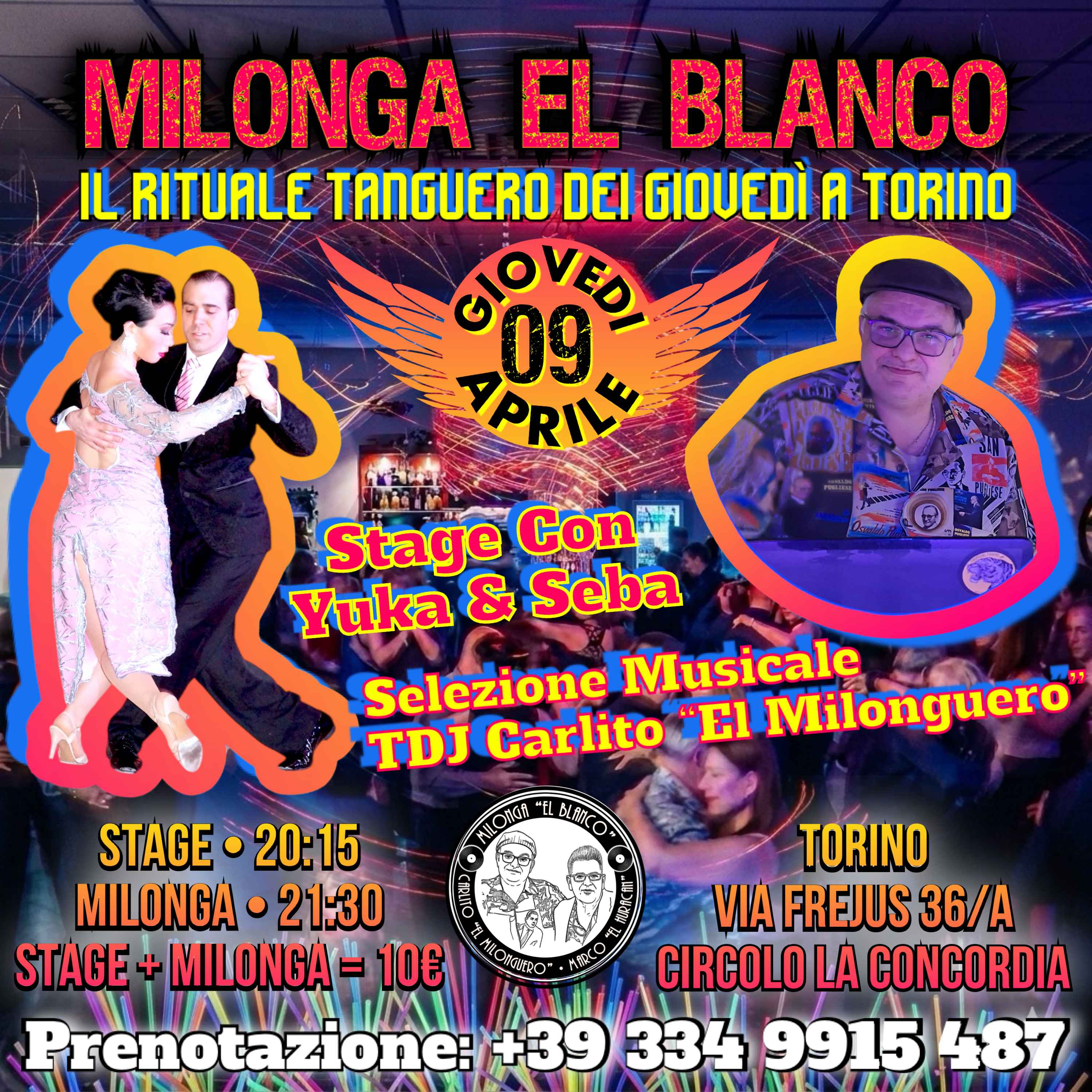 GiovedÌ 09 Aprile: Il Rituale Tanguero A Torino Ci sono appuntamenti che sono dei classici perché offrono esattamente ciò che ogni ballerino cerca: qualità, allegria e la migliore energia. Ti aspettiamo a "el Blanco" per un'altra serata indimenticabile. Crediamo in un tango che cresce attraverso il divertimento. La nostra formazione è pura energia: nello Stage con Yuka & Seba, l'intrattenimento è il protagonista! Impariamo cose nuove in modo dinamico e divertente, preparandoti a brillare e a mettere tutto in pratica la sera stessa in pista. Vieni a caricarti di positività prima dell'inizio del ballo! Programma Della Serata: 20:15 - 21:15: Stage Pre-milonga con Yuka & Seba Dalle 21:15: Milonga con tutta la carica in consolle di Tdj Carlito “el Milonguero”! Stage + Milonga = 10 €(uno spazio professionale dedicato allo studio e al piacere di ballare) Circolo “la Concordia” - Via Frejus 36, Torino. Disponibile il servizio bar interno alla sala. Con la cura musicale dei nostri riferimenti:carlito “el Milonguero” & Marco “el Huracan” Info e Prenotazioni:y&s: +39 327 85 60 253tavoli: +39 334 99 15 487 Link Evento: Zzzz sito Web: https://nuestrotangodance.wixsite.com/yuka-seba/it Guarda il video dei nostri Stage: https://youtube.com/shorts/RMbPexTd1Pg?si=mjuVOP-SiQDg4JbxIl giovedì è meglio con voi. Ci vediamo in pista! yuka & Seba tdj Carlito “el Milonguero”tdj Marco “el Huracan”
