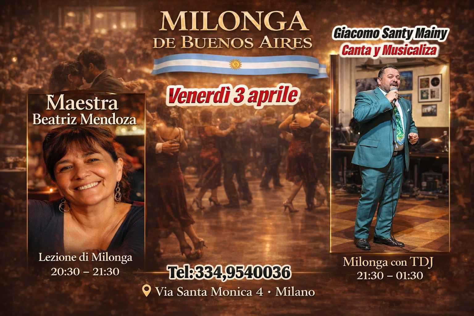 Inizia La Serata dalle 20:30 alle 21:30la Maestra Beatriz Mendoza , con Una Lezione di Milonga SIMPLE