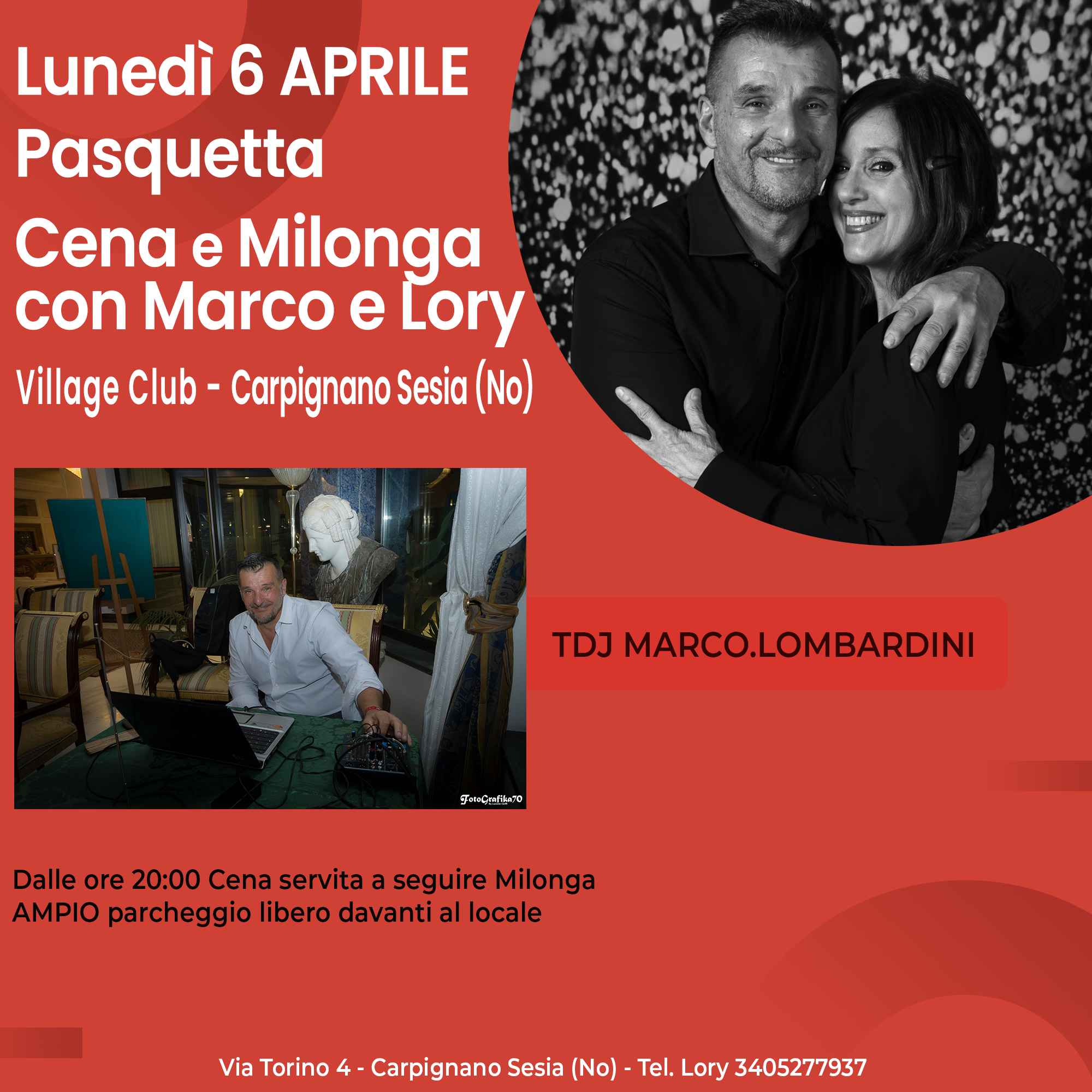 Cena + Milonga al Village di Carpignano Sesia (No) con Marco e Lory Tango Argentino