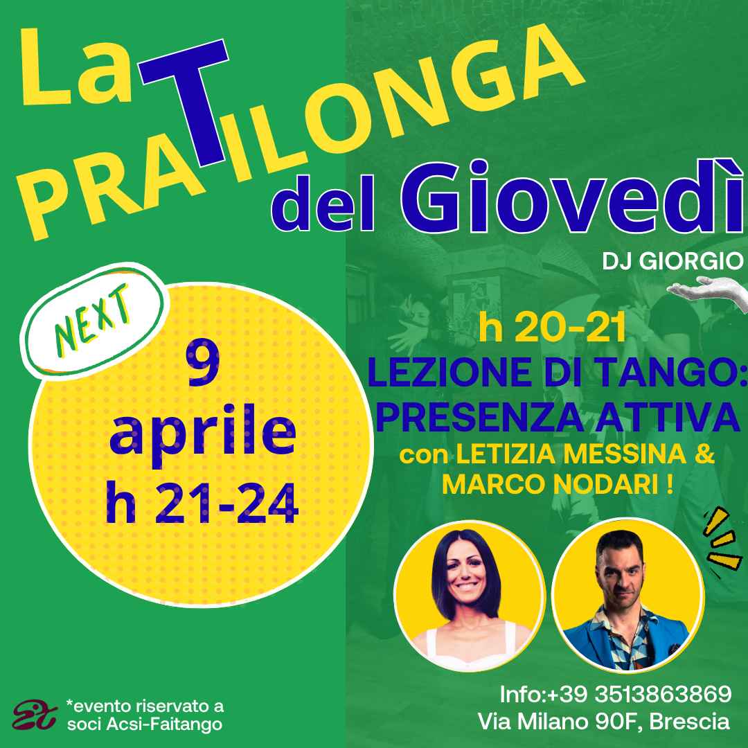 La Pratilonga è uno spazio dedicato a chi vuole praticare il tango argentino in amicizia in un contesto tranquillo e alla mano.attività riservata ai soci tesserati Acsi TANGO