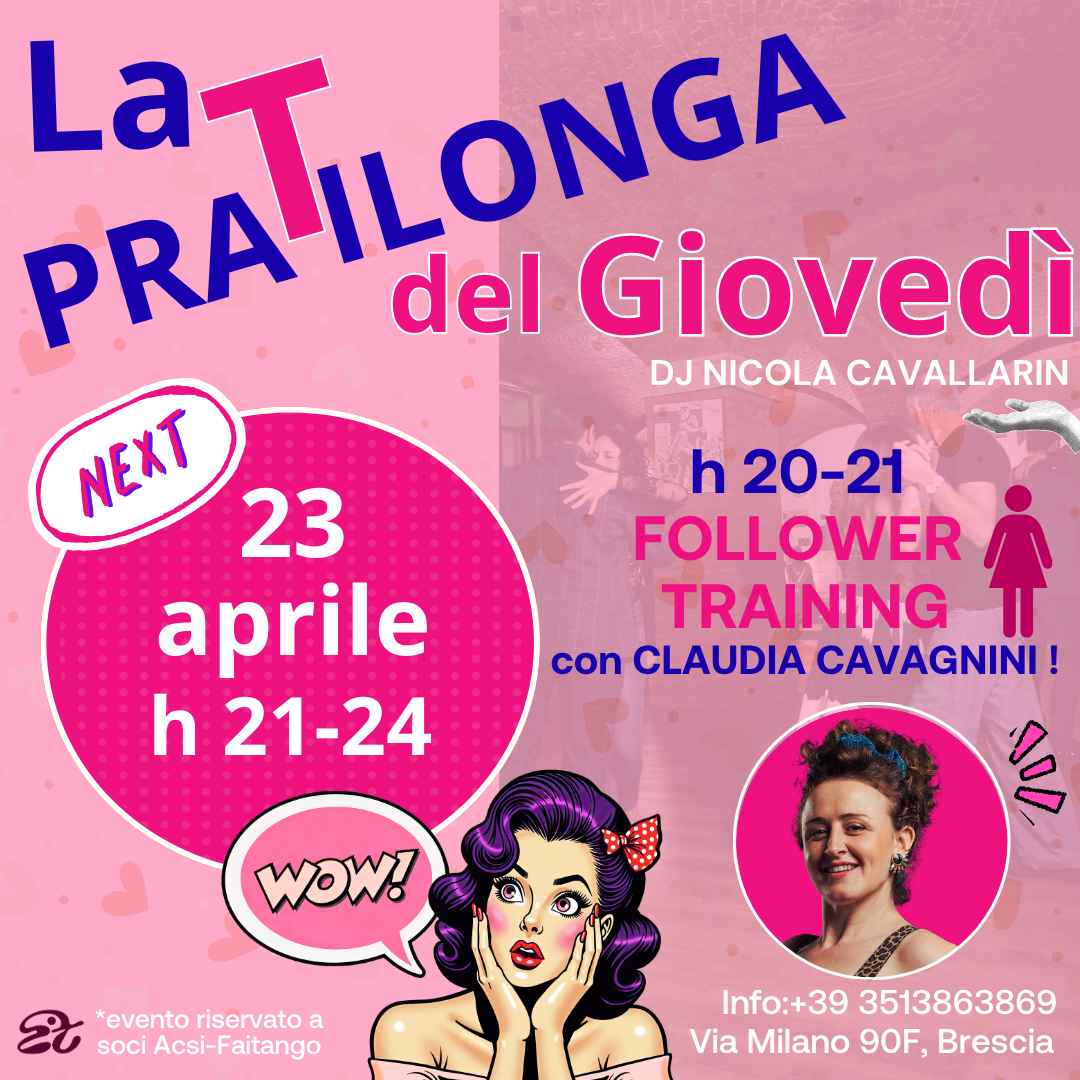 La Pratilonga è uno spazio dedicato a chi vuole praticare il tango argentino in amicizia in un contesto tranquillo e alla mano.attività riservata ai soci tesserati Acsi TANGO