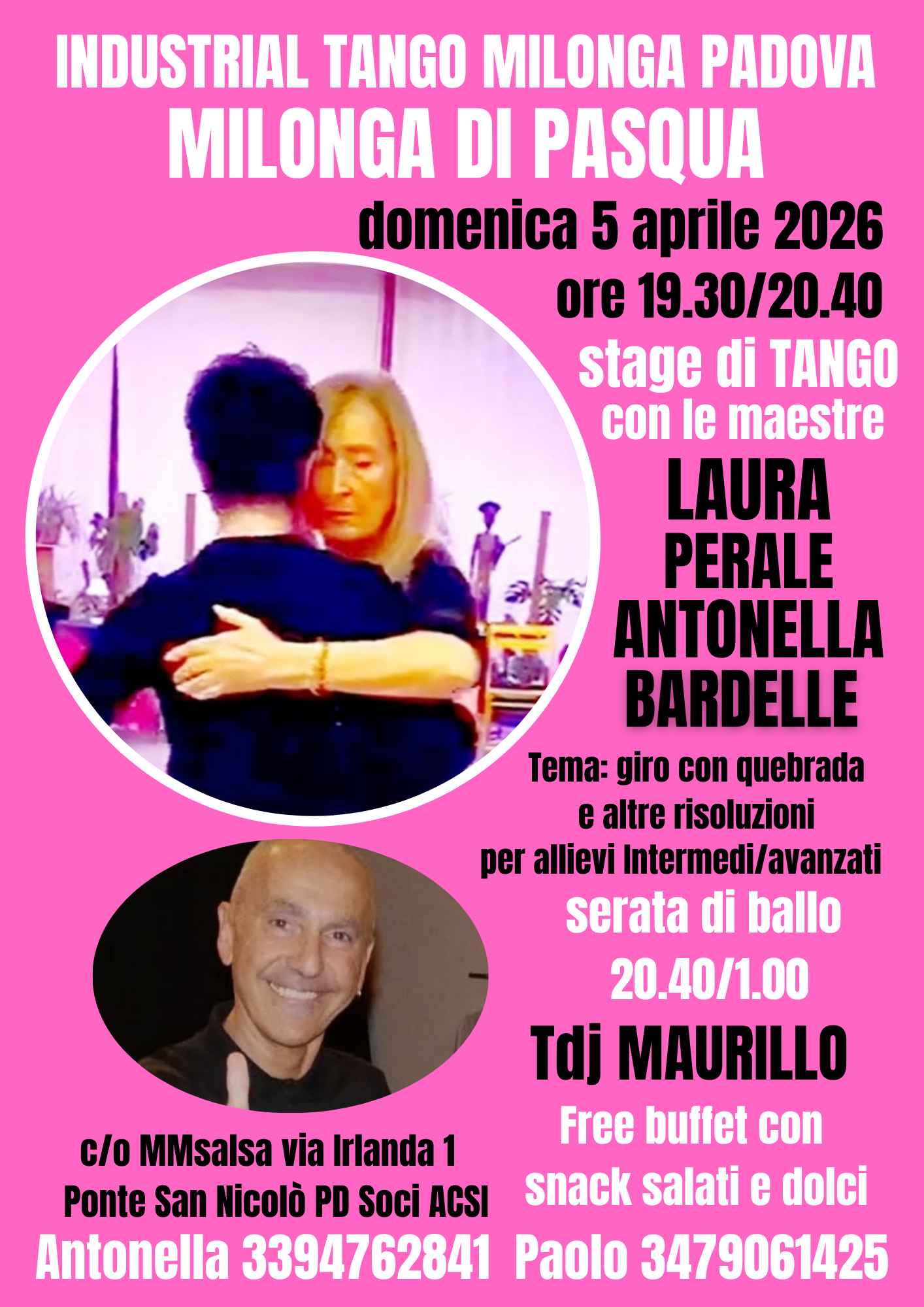 Industrial Tango Milonga di Pasqua: stage con Laura Perale e Antonella Bardelle; Tdj Maurillo