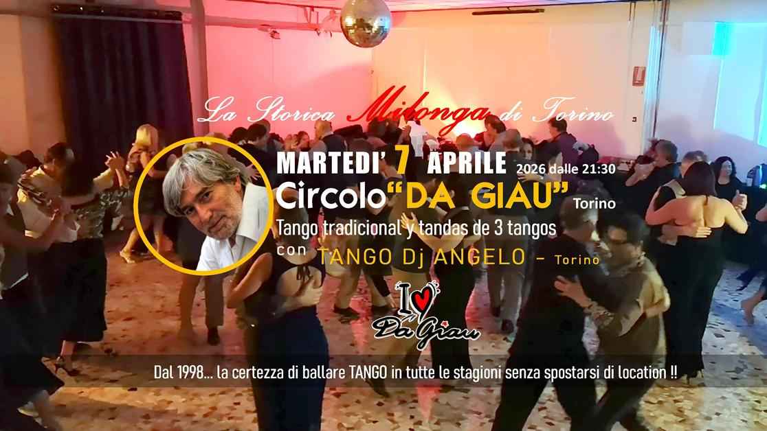 Il circolo "da Giau" propone una serata interamente dedicata al Tango Argentino, che, con oltre trent'anni di attività ininterrotta, rappresenta l’appuntamento storico e più duraturo nel panorama delle Milonghe Torinesi. A partire dalle ore 21:30 tutti gli appassionati di questa sensuale danza potranno abbandonarsi sulle note dei più bei temi delle Milonghe di Buenos Aires.