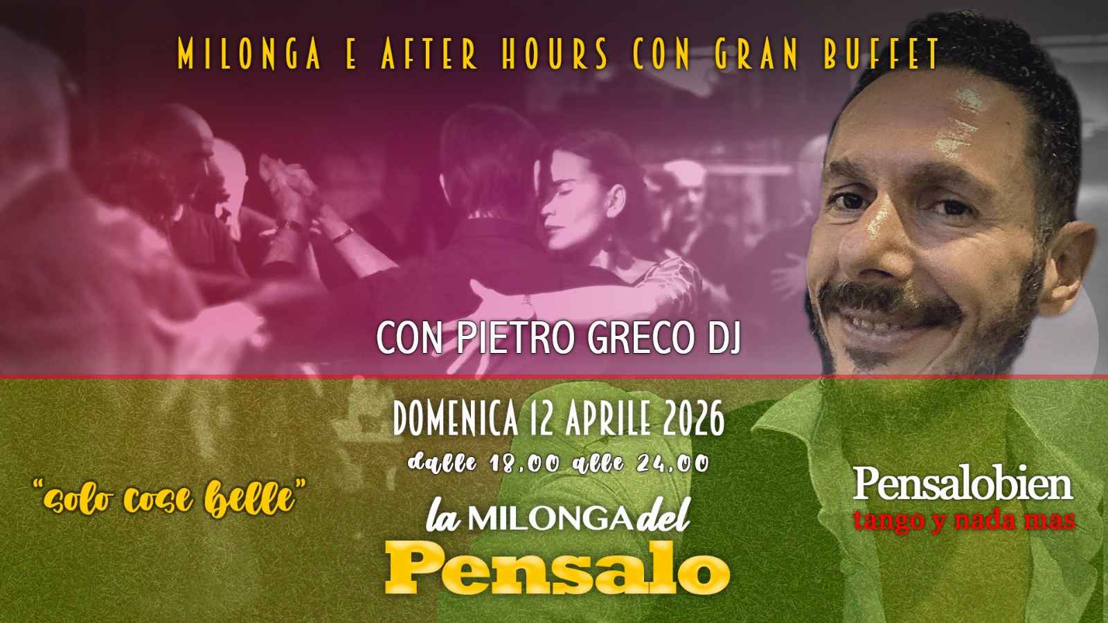 🎶 Selezione Musicale: Tdj Pietro Greco🕕 Apertura Milonga: ore 19.00💶 Ingresso: €25 (buffet + prima consumazione inclusa)