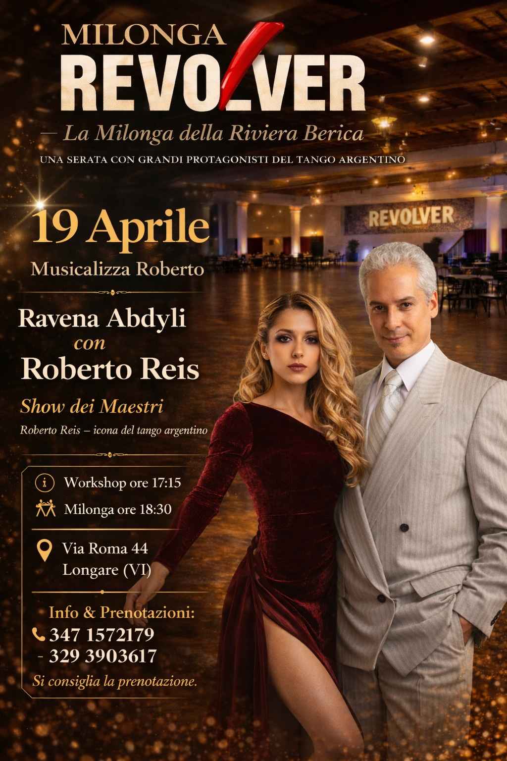 Milonga R E V O L V E R lezione & Show con Roberto Reis e Ravenna Abdyly. Musicalizza Roberto