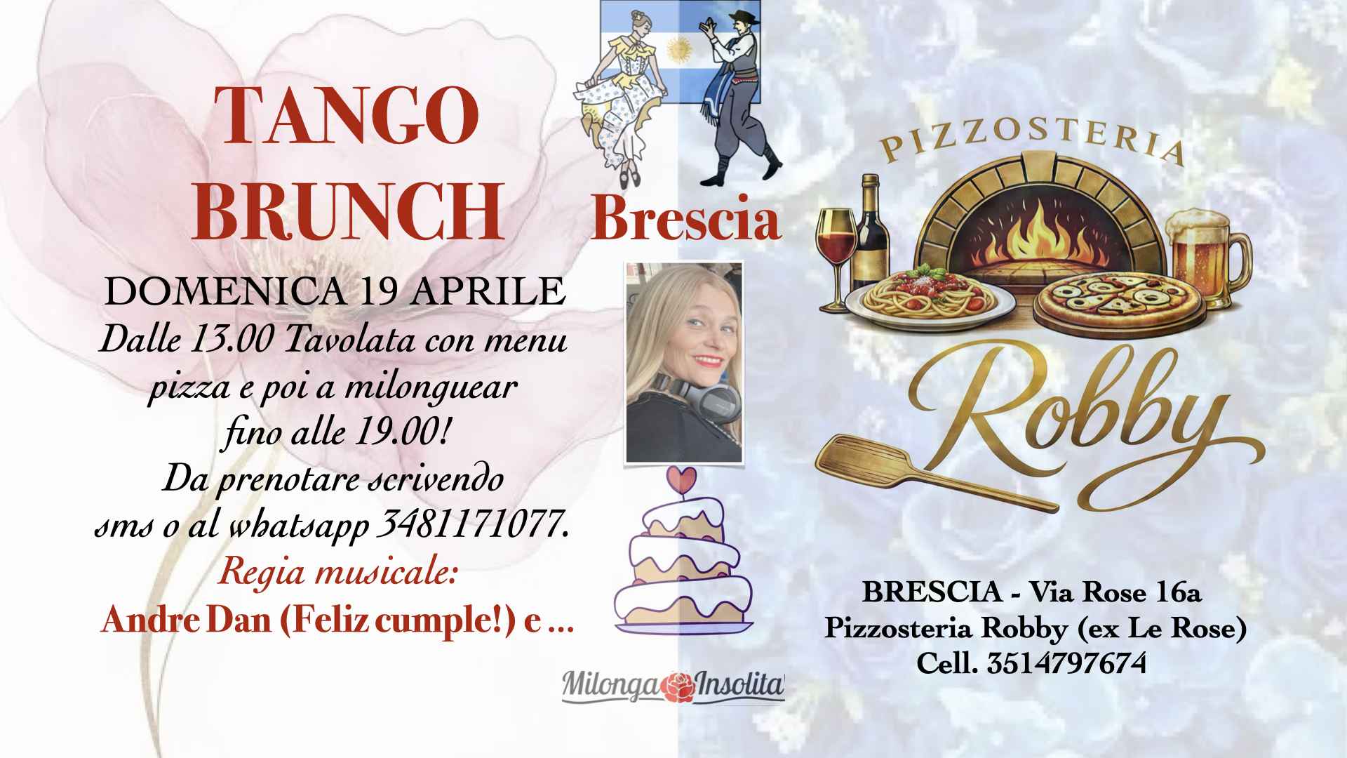 Cari amici del Tango! Siamo felici di confermare il grande ritorno della Milonga Insolita estiva di martedi, sotto le stelle di Via delle Rose 6a (Brescia Ovest)! Presto vi comunicheremo la data ufficiale di partenza, ma nel frattempo vogliamo festeggiare con voi la nuova gestione brescianissima! il locale è completamente rinnovato: più spazio per ballare all’interno, la tradizione dell’osteria di una volta e un meraviglioso forno a legna a vista nel dehors. Per inaugurare al meglio la stagione... Domenica 19 Aprile – Tango Brunch + Compleanno di Andre(a) Tdj! Dalle 13:00 ci godremo una tavolata in compagnia e balleremo fino alle 19:00 e oltre volendo. E se il tempo lo permette siamo all'aperto con il caldo dell'orario pomeridiano fino al tramonto! Regia musicale: Andre Dan Tdj e ... L’offerta Brunch (22€ - Milonga inclusa): Pizza a scelta (disponibile anche senza glutine e/o lattosio), acqua, una bevanda (calice di vino, birra o bibita), caffè...e ovviamente il momento della torta! (altre opzioni di food disponibili in loco)