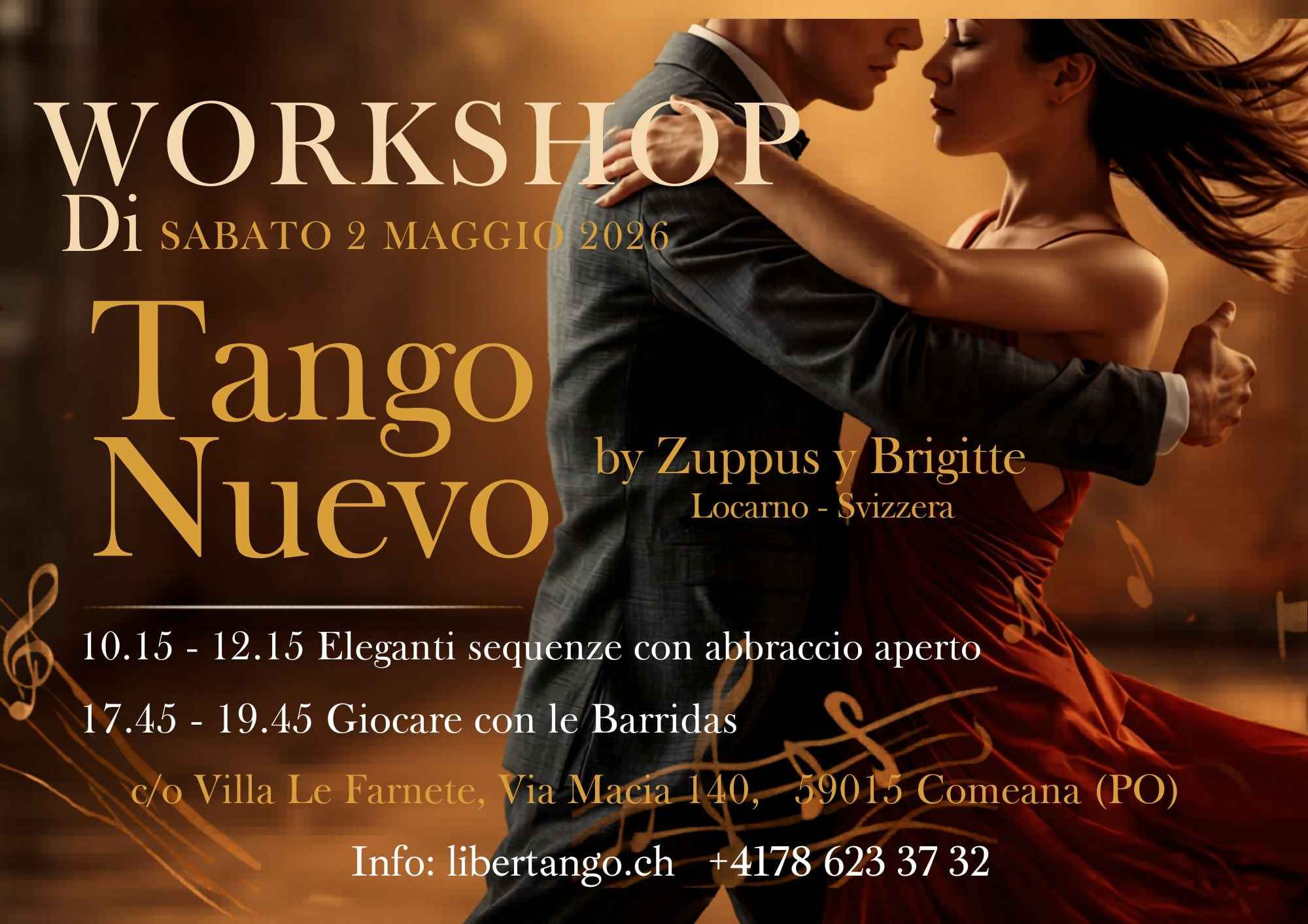 Workshop di Tango Nuevo -livello unico, aperto a chi desidera esplorare e approfondire il proprio tango. Un lavoro su connessione e dinamiche contemporanee, in un percorso dinamico creativo che unisce tecnica ed espressivita.