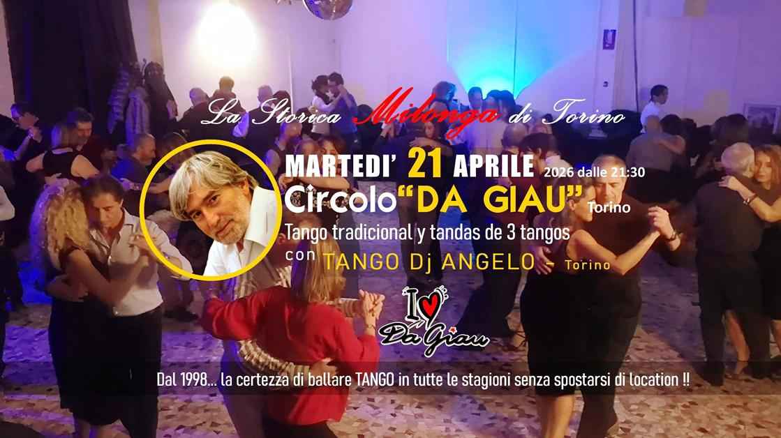 Il circolo "da Giau" propone una serata interamente dedicata al Tango Argentino, che, con oltre trent'anni di attività ininterrotta, rappresenta l’appuntamento storico e più duraturo nel panorama delle Milonghe Torinesi. A partire dalle ore 21:30 tutti gli appassionati di questa sensuale danza potranno abbandonarsi sulle note dei più bei temi delle Milonghe di Buenos Aires.