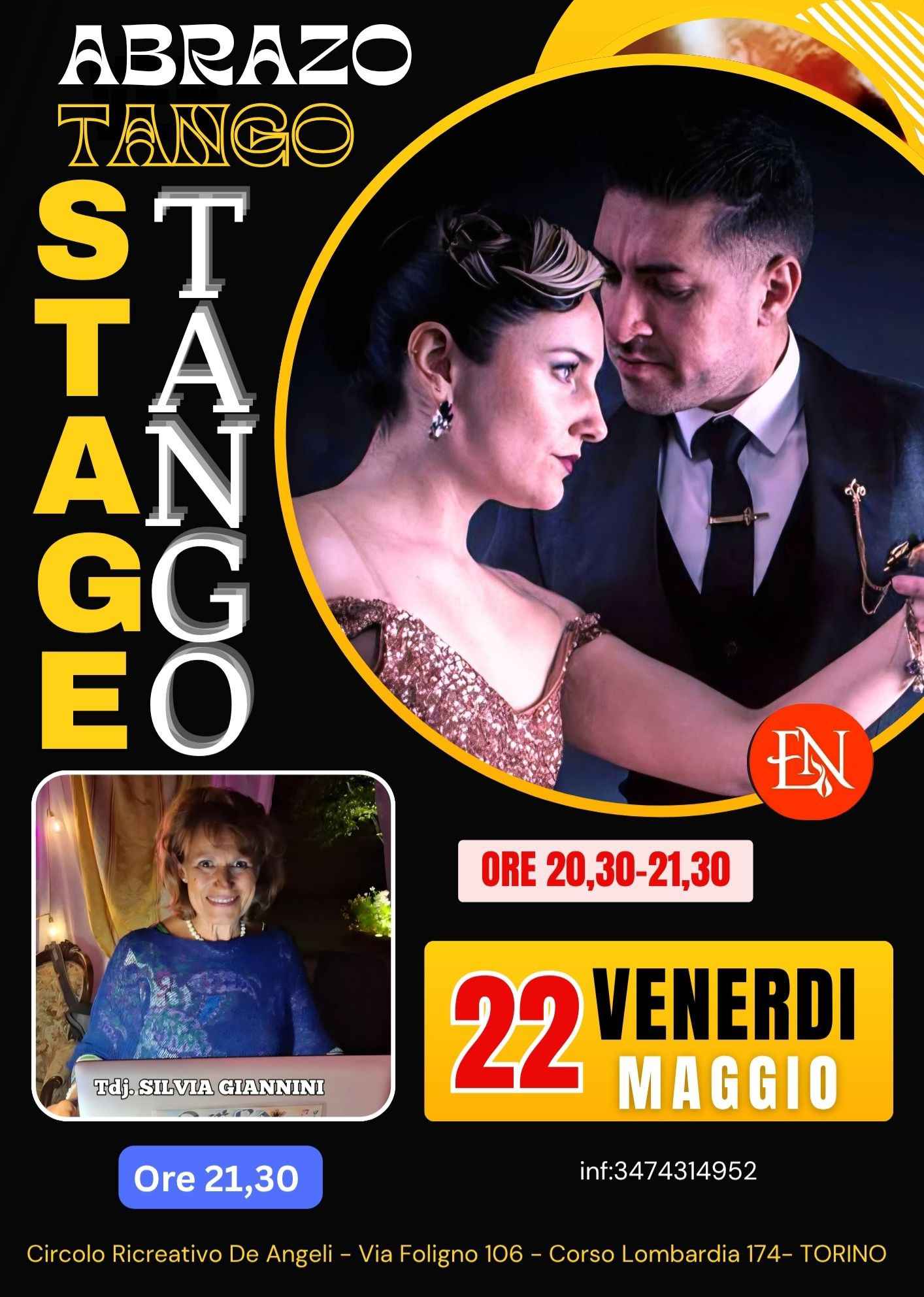 Percorso Di Crescita con Evelyn E Nahuel Si studia il Tango Dalle 20,30 Alle 21,30 Vi Aspettiamo. i venerdì della milonga Abrazo, dove si balla, si chiacchera, e si sta insieme in allegria! Per l'occasione vi anticipo che i maestri li avremo tutto il mese di Aprile Maggio e Giugno La coppia di Maestri Argentini strepitosi Evelyn E Nahuel con lo stage di Tango dalle 20,30 alle 21,30 tutti i venerdì con scopo di far crescere i partecipanti ai loro Stage, ci sarà buffet e bere per tutti e dalle 21,30 Milonga dal Tradizionale e Contemporaneo la selezione musicale sarà a cura del la Tdj. Silvia Giannini Estrazione: 1 Stage + Milonga E 2 Ingressi Solo Milonga In Omaggio Per Il VenerdÌ Successivo.sarà l'occasione per ritrovarsi di nuovo nella nuova sala da ballo di 200 metri con pavimento perfetto e locale climatizzato, acqua free e si balla fino alle 0,30.